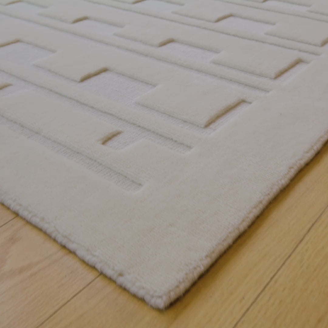 Subtle never looked so stunning. This elegant area rug is hand-knotted with a special technique to create a seamless blend of texture and dimension, with a mix of varying pile heights. Designed in a soft grey and ecru hue and minimal design, this neutral rug was born to live anywhere and everywhere – your living room, home office, or bedroom.