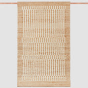 Easy to love. Easy to blend. This timeless jute accent rug plays nicely with any aesthetic, from minimal modern to eclectic boho. Mixing distinctive stripes in ecru wool with an elongated checkered pattern, each piece adds an organic warmth wherever it lands.