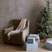 Warm, neutral tones. A modern grid design. Hand-knotted fringe. This throw blanket is pure artistry. Hand-loomed from the softest baby alpaca, it’s made for those stay-in-and-get-cozy days to come.