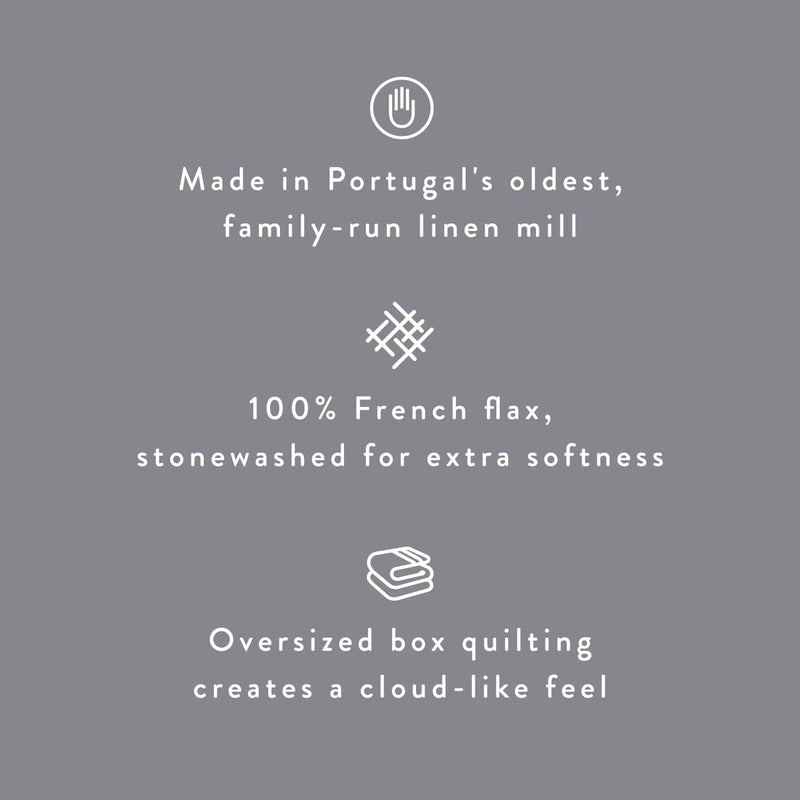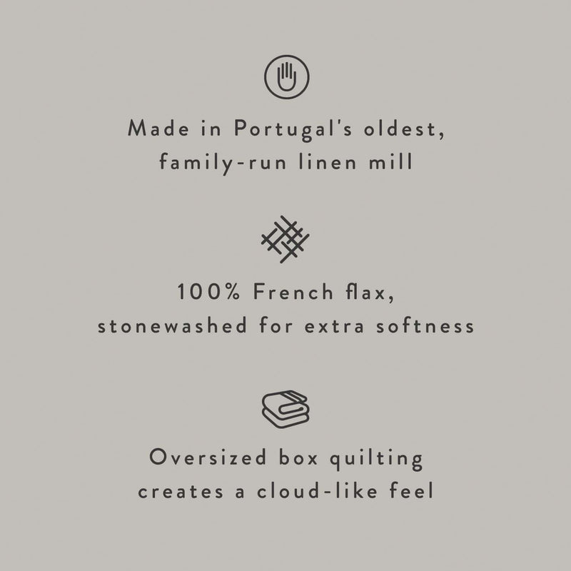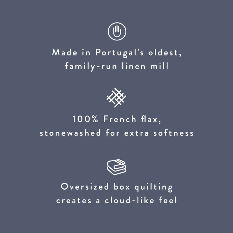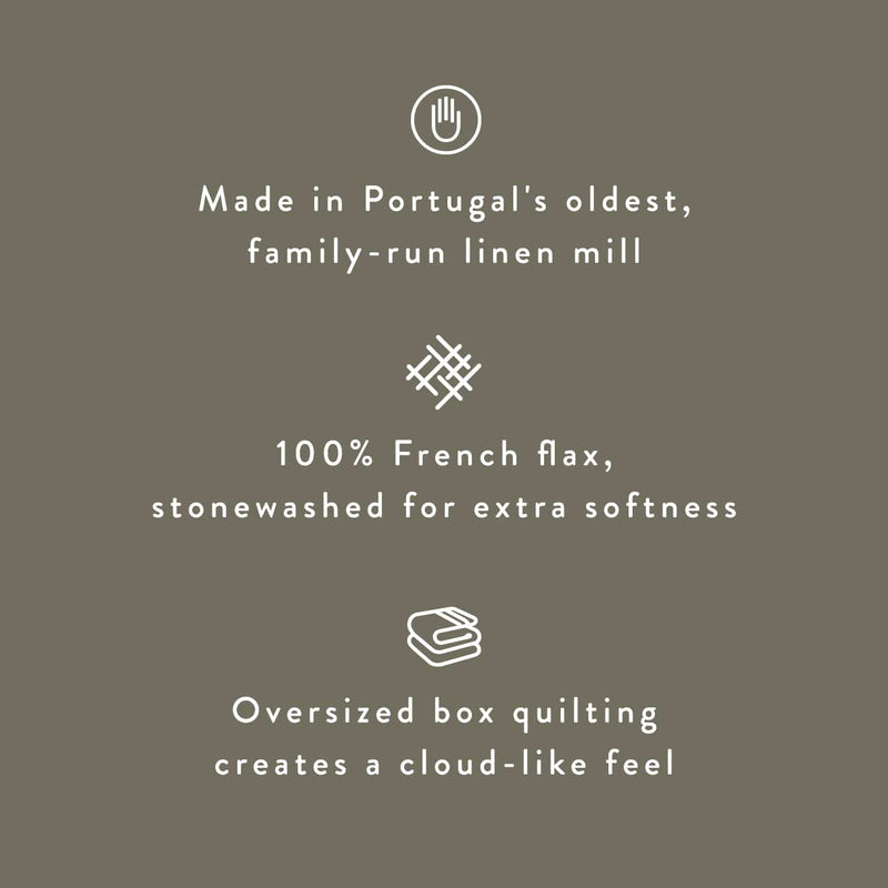 Made using only the finest French flax and woven in the oldest, family-run linen mill in Portugal, each piece is Oeko-Tex®-certified and made sustainably in a fair trade working environment.