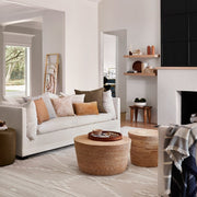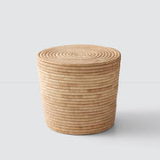 Add a warm, organic feel to your space with this modern accent table. Meticulously handcrafted with natural palm leaves, this table is constructed with a double wall of tightly braided coils, it’s extra sturdy, doubling as a side table or extra seating.