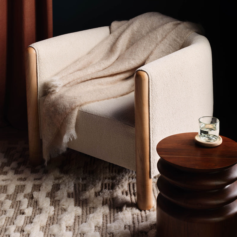 Crafted in the Carpet Belt of India, every rug is hand-knotted over days at a workshop in Chedibeer. The work of a collective of over 60 artisans, every piece is made start to finish in a fair trade environment.