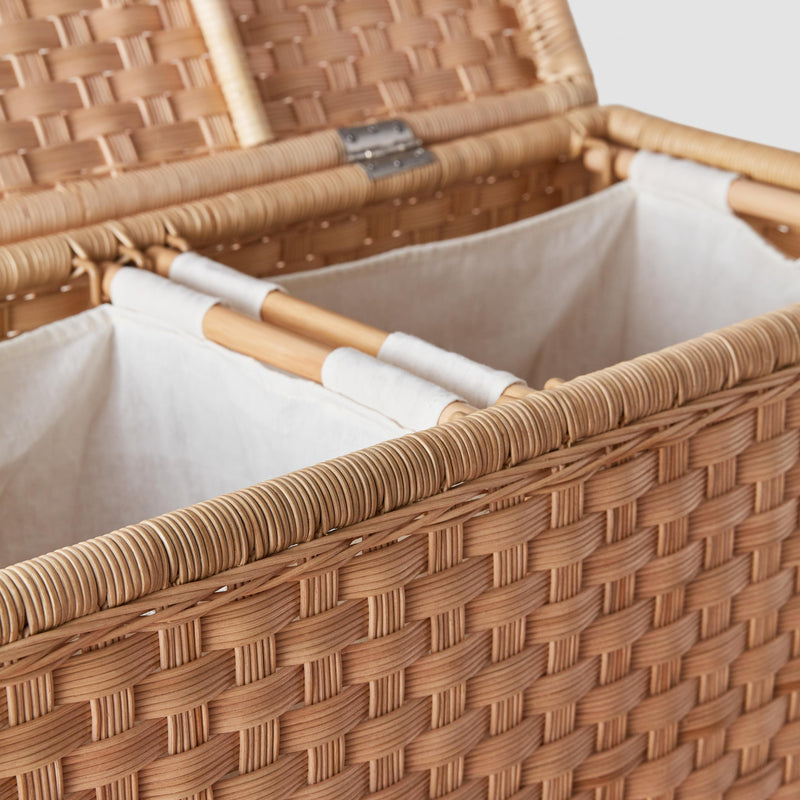 Laundry day never looked better with this stunning wicker hamper, crafted by hand from locally-sourced rattan. Woven with a traditional six-strand technique, each hamper comes with a removable cotton liner to make every load a bit lighter.