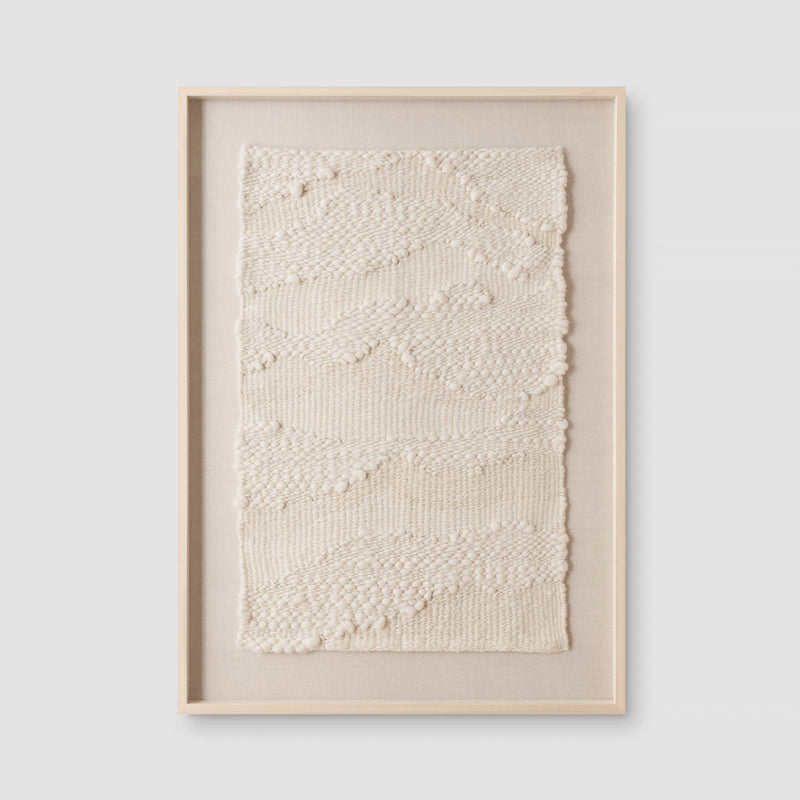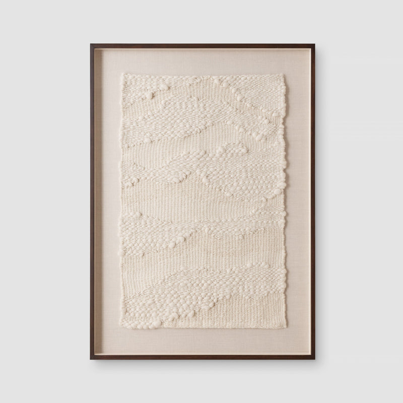 Taking several notes from the rolling mountain ranges of Peru, this understated wall hanging brings a touch of tranquility wherever it goes. Woven entirely on a hand loom, every piece is crafted from incredibly soft wool, brought together with varying thicknesses to create a textural work of art. Framed with light or dark poplar, it’s a masterpiece that you don’t have to hike to see.