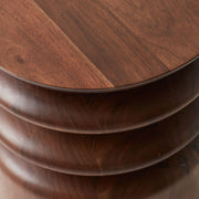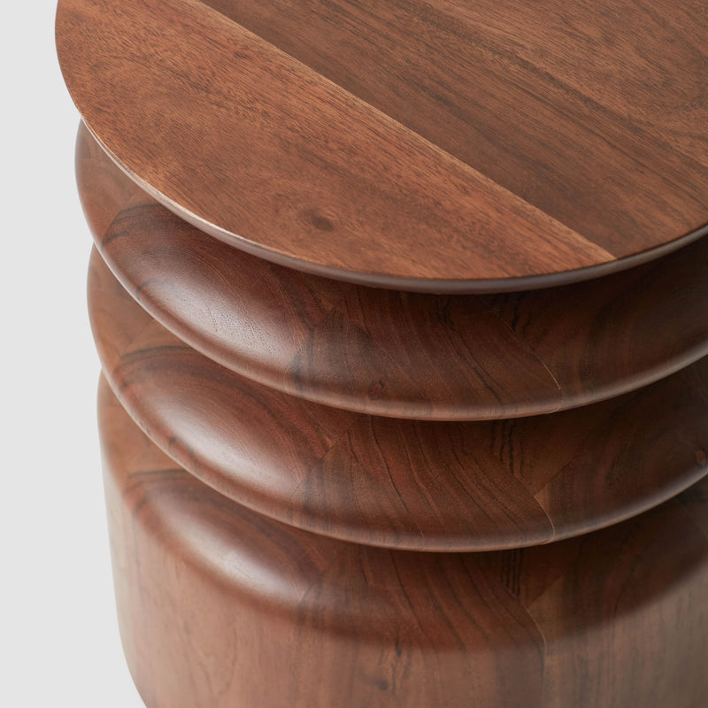 Rounded, sculptural shapes. Rich, FSC-certified acacia wood in a deep cocoa finish. The perfect accent to a bedroom or living room, this stunning side table is sure to turn heads. Adding a sophisticated, yet unique touch, each piece can be used as a stool, a small table, or even a solidly-crafted ottoman.