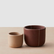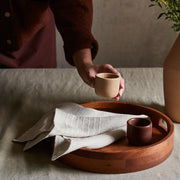 Small in stature, but never in style. Hand-painted detailing sets off a bold matte finish on these laid-back espresso cups, sustainably made from rich clay. Available in black, tan, or red, these compact, easy-to-hold cups are a perfect pick-me-up for your morning ritual. Go for a single color or choose a multi set to receive 2 red cups and 2 tan cups.