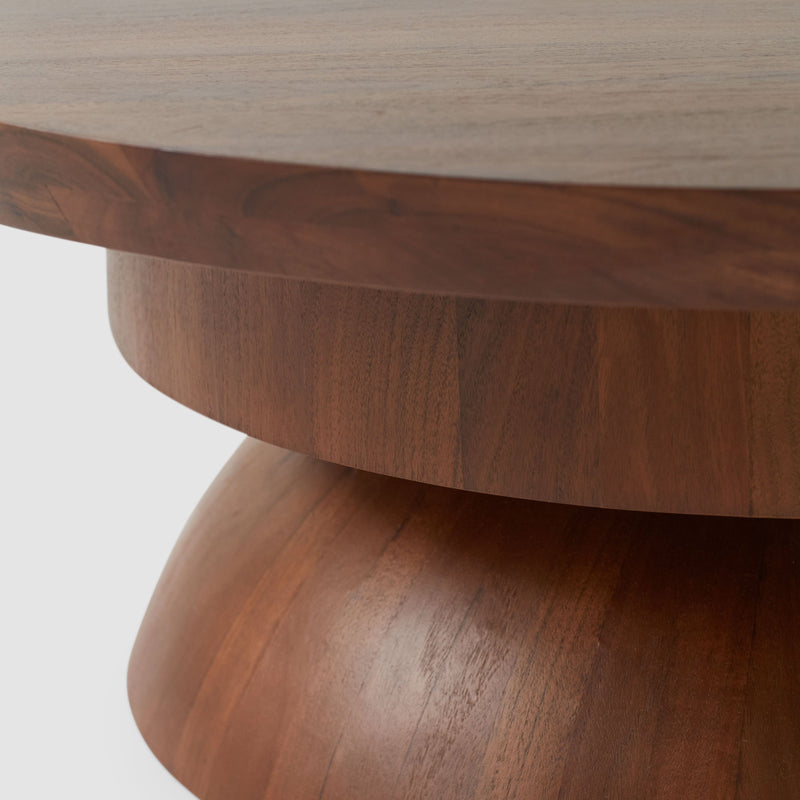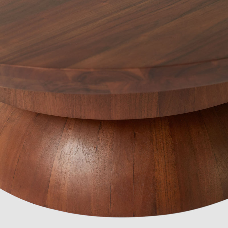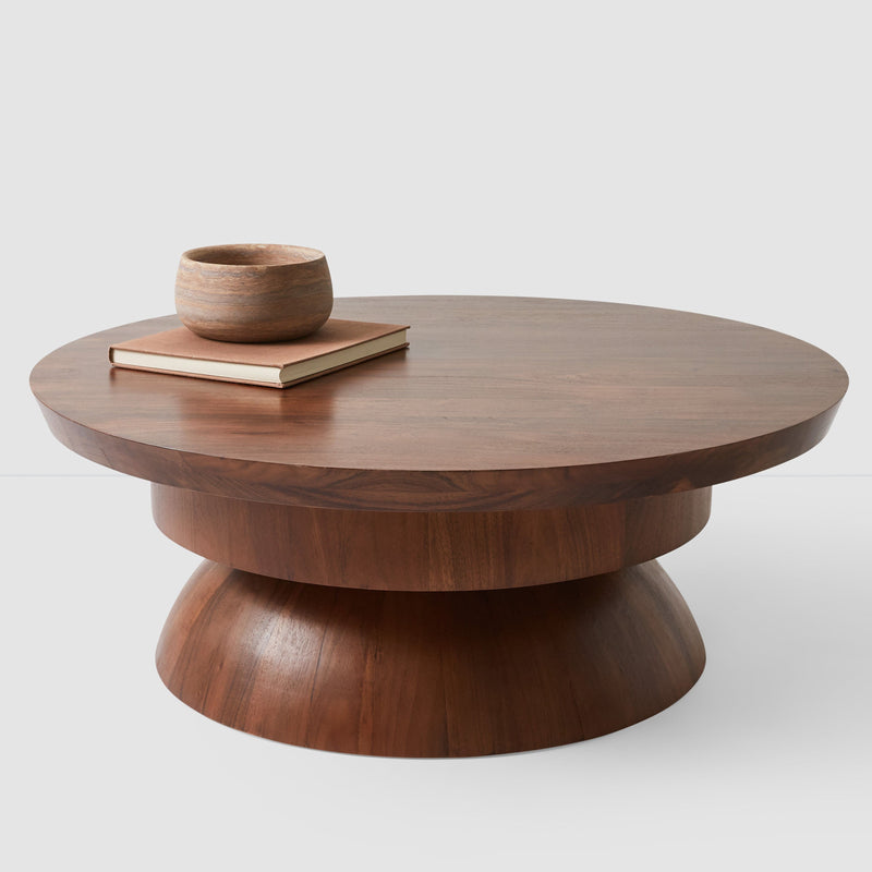 A museum-worthy sculpture you can set a drink on, this stunning coffee table mixes smooth surfaces, rounded edges, and geometric details that always make a statement. Built from FSC-certified acacia wood, each piece features a distinctive grain and deep cocoa finish that makes it truly one of a kind.