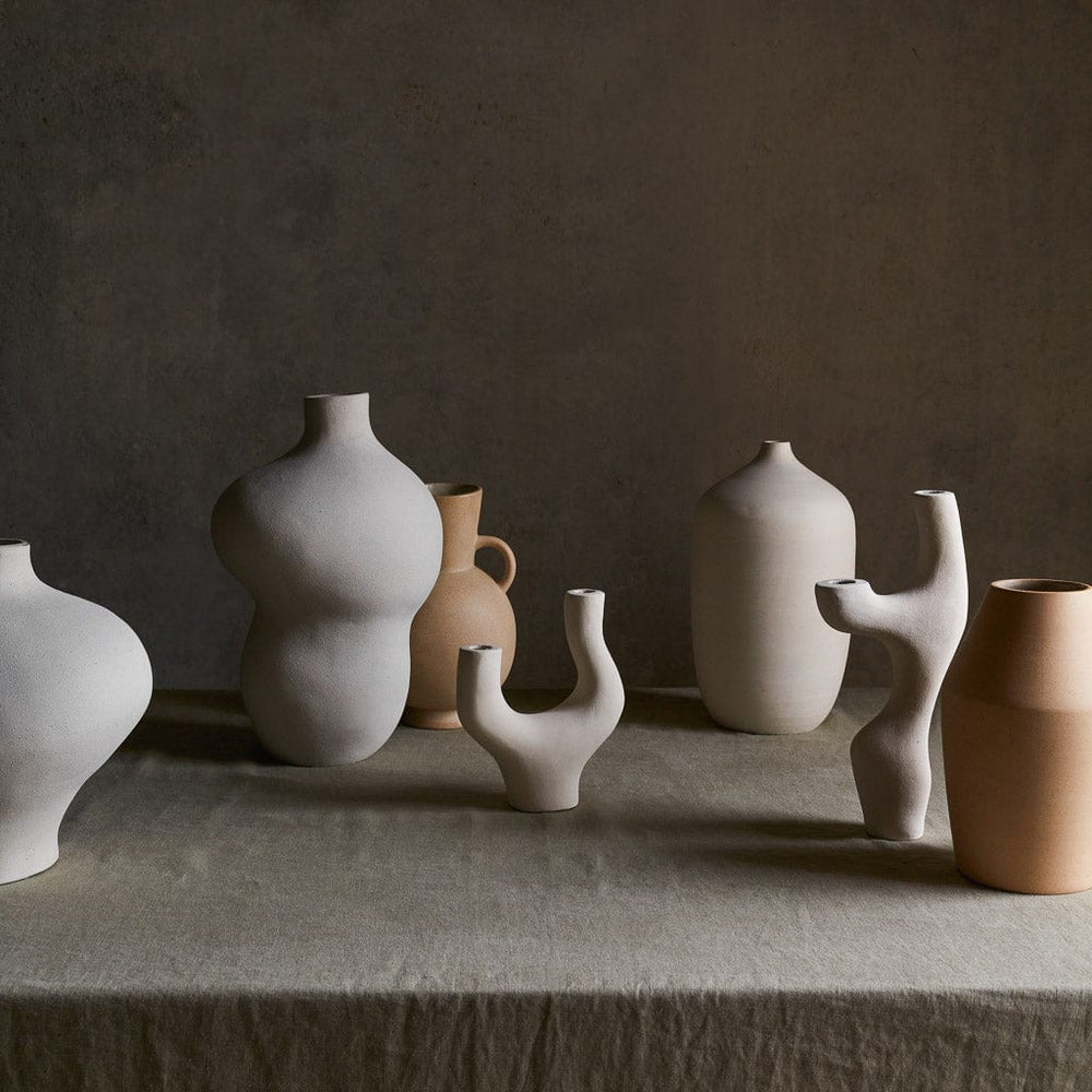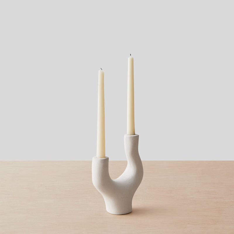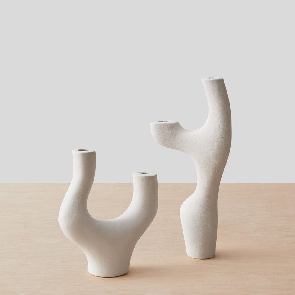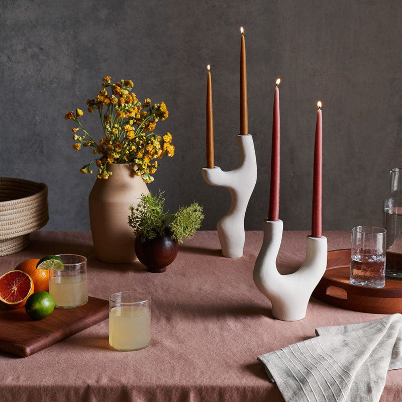 Rich, locally-sourced clay forms the fluid shapes of these sculptural candleholders, inspired by the landscapes of Jalisco. A perfect accent for your table or console, each one-of-a-kind piece features its own unique texture, subtleties, and imperfections.