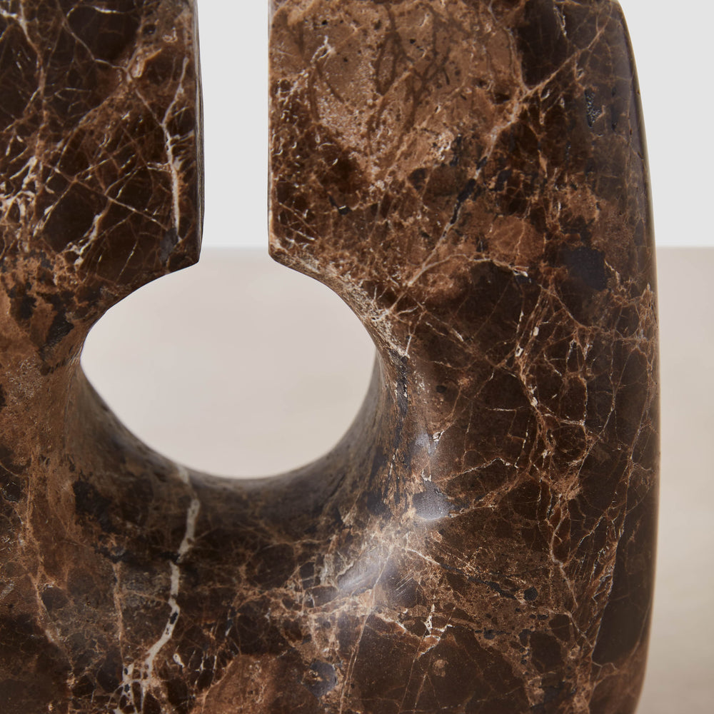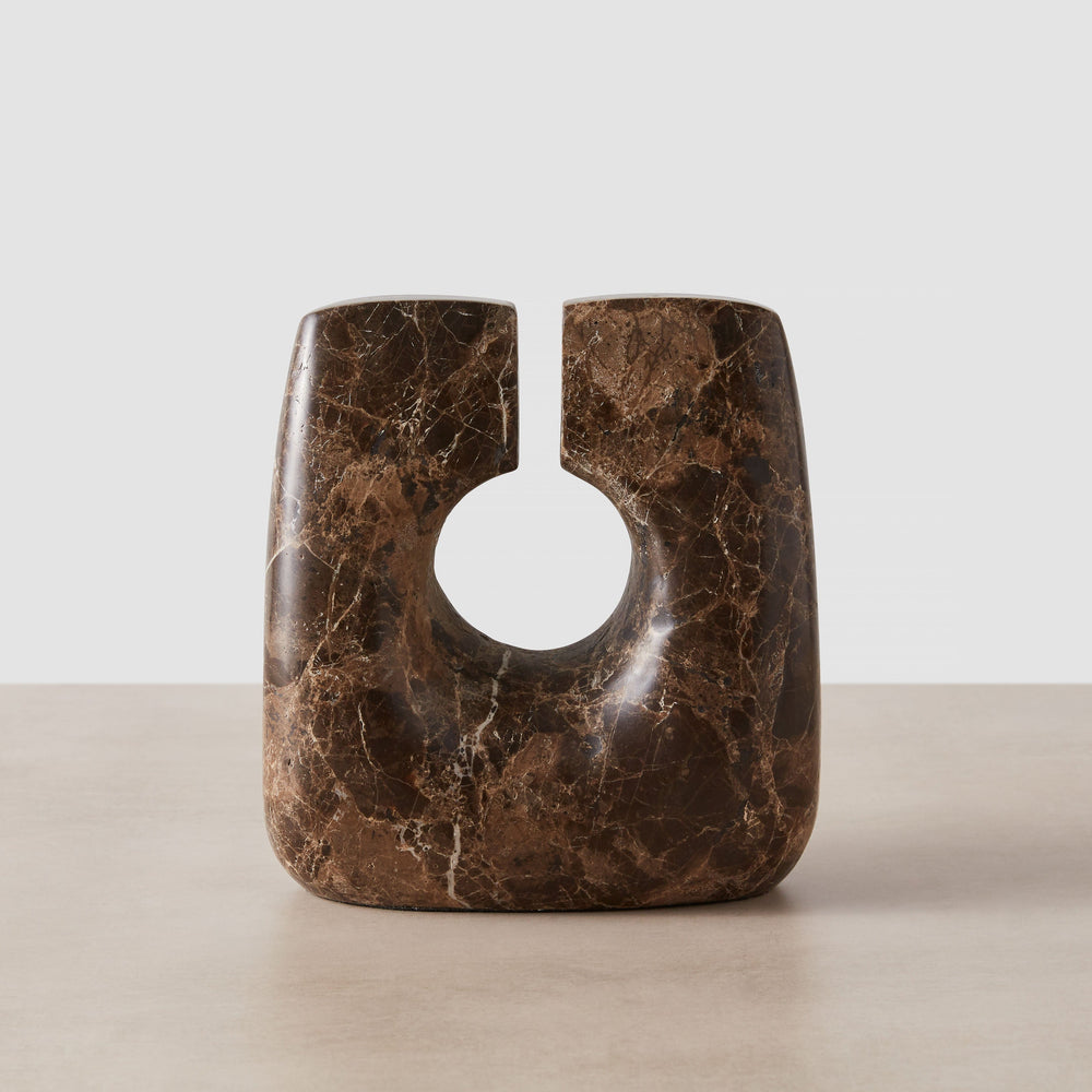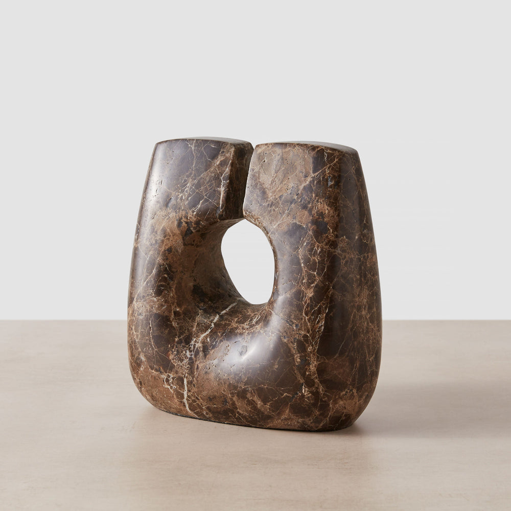 If you’re a fan of the strong, silent type, you can’t go wrong with this stunning sculpture. Crafted from dark emperador marble, each piece features distinctive veins and earthy neutrals that make it truly one of a kind. Both traditional and timeless, this museum-worthy piece is a match for any aesthetic.